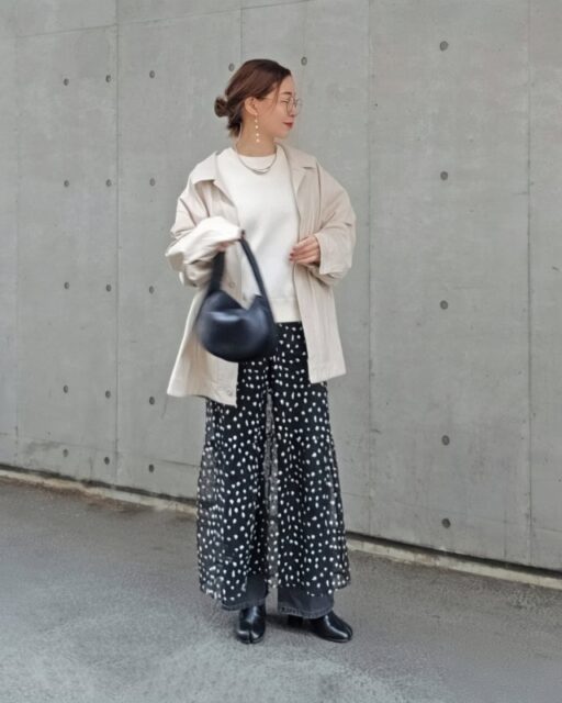 軽やかなレイヤードスタイルは今季らしさを演出できるおすすめの着こなしです。例えば顔映りを明るく見せる白トップスにシアーなワンピースやスカートを合わせ、さらにパンツを重ね着。ほんのりとした透け感が春らしく、こなれたムードが引き立ちます。