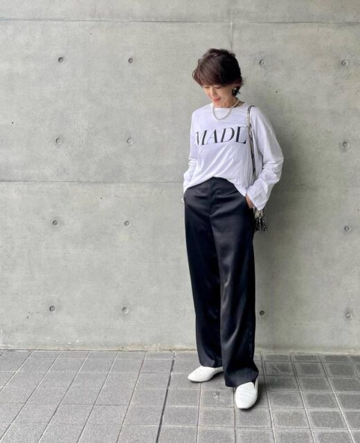 3月も半ばを過ぎると、靴は春らしいものに履き替えたくなるもの。「ラクな靴がいいけれどスニーカーではカジュアルすぎる」、そんなときには白ローファーがうってつけ。きちんと感と爽やかさを兼ね備えているので、40代50代の春コーデにぴったりマッチします。