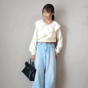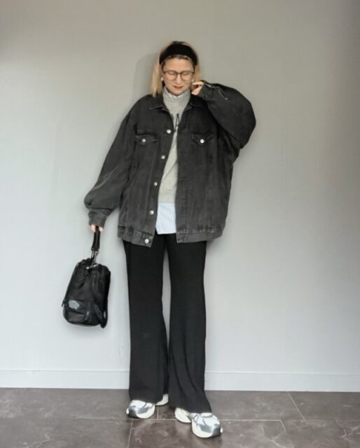昨年から人気継続中のオーバーサイズのデニムジャケットは着回しやすいのが魅力。デニムジャケットは一般的に着丈が短いため、インナーを合わせたときにバランスが悪く見えやすいものですが、長め丈ならインナーに迷う心配がなくなります。