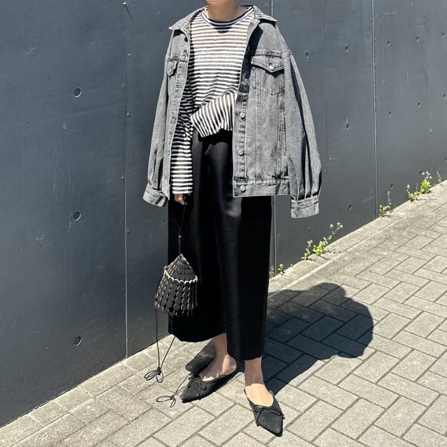 【2026デニムジャケットコーデ4】モノトーンでスタイリング
