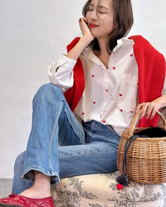 デニムパンツ×カーディガン×シャツ・ブラウスのコーデ