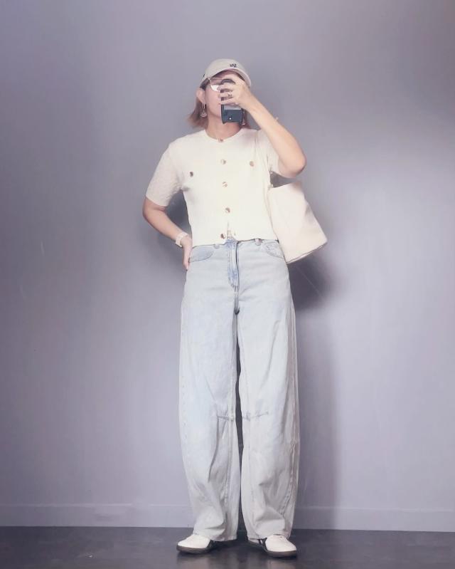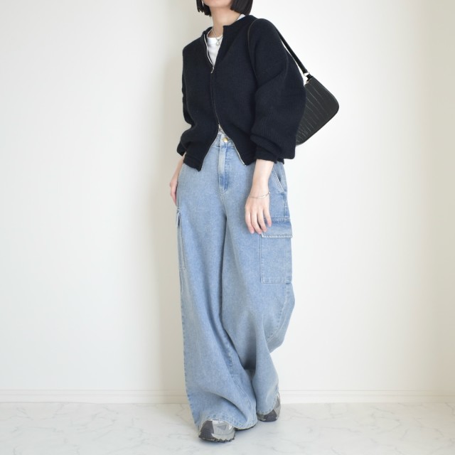 デニムパンツ×ショート丈カーディガンのコーデ