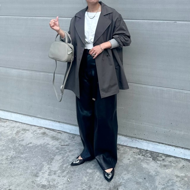 ミドル丈トレンチコート×センタープレス・ワイドパンツのコーデ