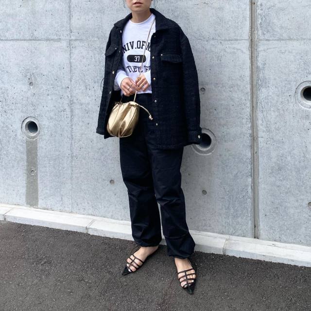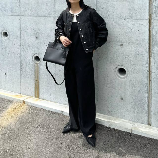 黒デニムジャケット×オールブラックコーデ