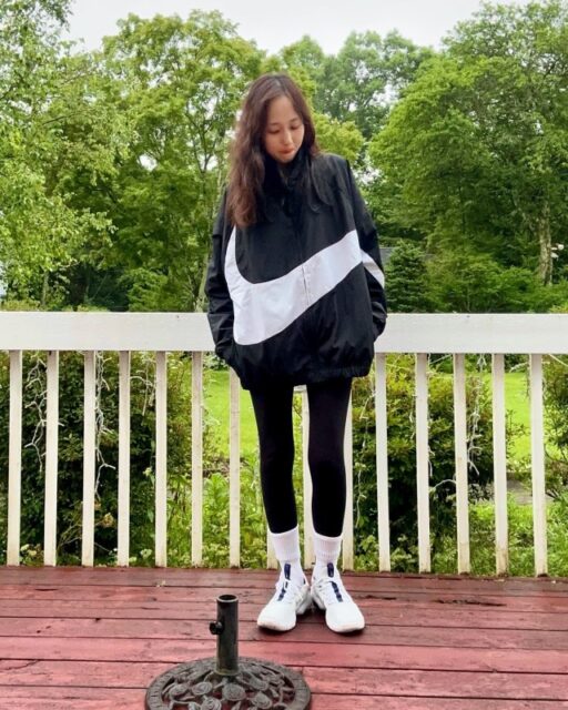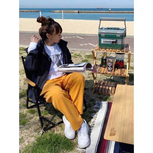 雨が少しでも降る予報なら、ボトムは「乾きやすいパンツ」をチョイス。おすすめはレギンス・ジョガーパンツ・ナイロン製のパラシュートパンツ。レギンスやジョガーパンツは速乾性、ナイロンパンツははっ水性に優れているので野外のフェスにぴったりです。