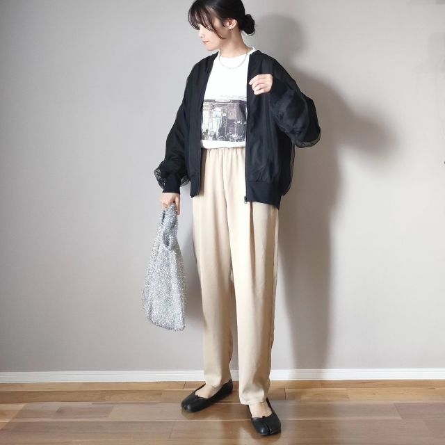 アウターの中でも春らしさがピカイチなのが「ナイロン・チュール生地のブルゾン」。見た目は軽やかなのに保温性があり、春の肌寒い日にうってつけ。インナーで調節すれば冷え込みが厳しい4月上旬も使えますよ。