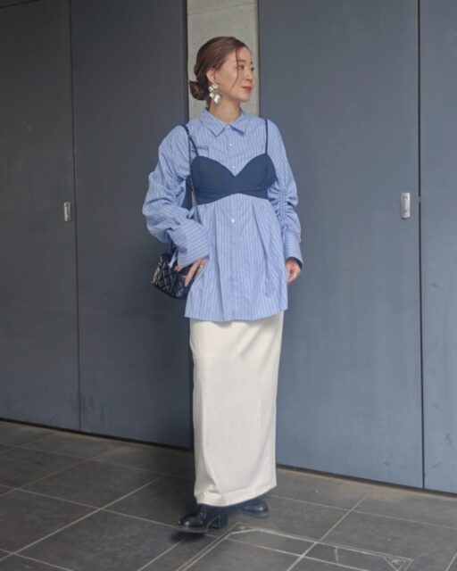 その際、服は春らしいものを選ぶのがコツ。スナップのように白スカート×ストライプシャツに合わせたりデニムジャケットを羽織ったりすると、足元の冬っぽさが気になりませんよ。