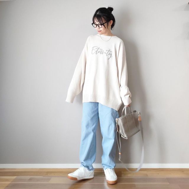 【4月の寒い日に着る服4】すごく寒い日は「白ニット×デニムパンツ」
