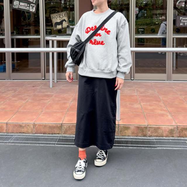 昼間も気温が低い日のトップスは「スウェット」が最適。Tシャツ生地より肉厚なので暖かく過ごせます。その上スポーティな印象の服なので、春のコーデにぴったりです。