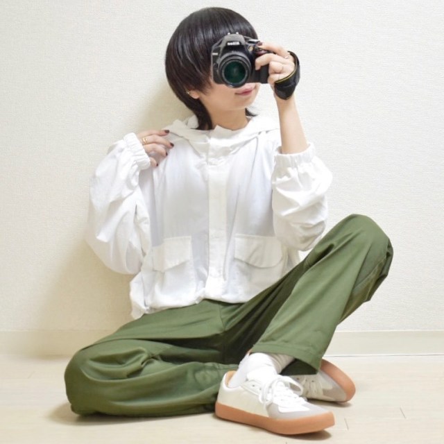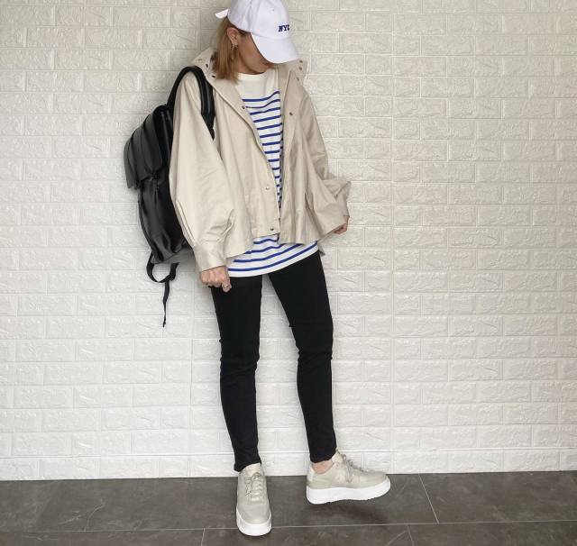 マウンテンパーカーもおすすめのアウター。フードをかぶれば首元の冷え防止にも役立つので、ぜひ上手に活用してみてください。