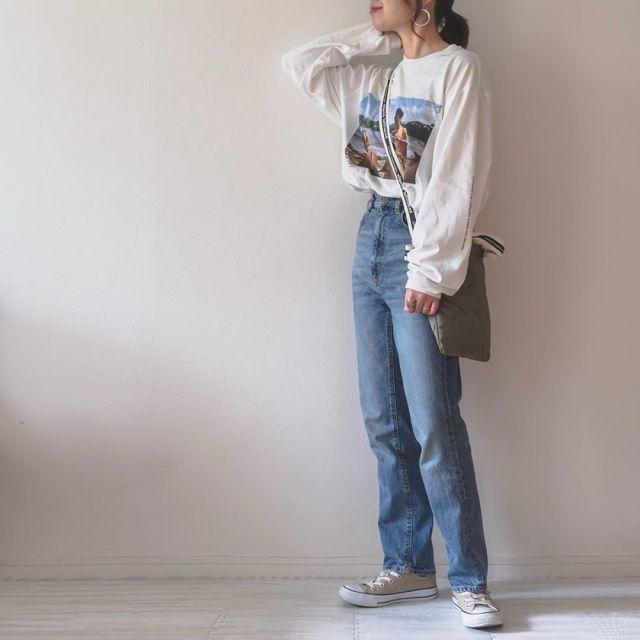 気温22度の日にはロンT(長袖Tシャツ)もイチ押し。アクティブで動きやすい、ディズニーにふさわしい大人カジュアルコーデに仕上がります。