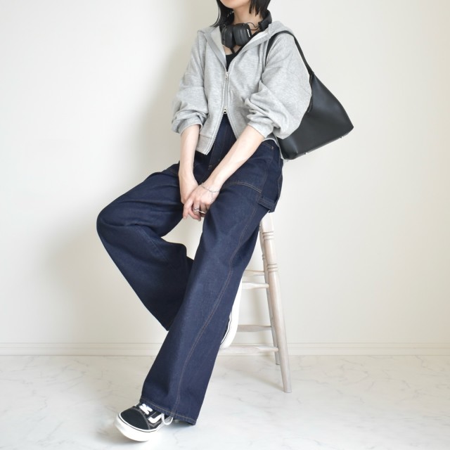 オールマイティに使えるアウターといえば、やっぱり前開きのパーカー。暑いときは腰に巻いて、寒いときはフードをかぶって首回りまで暖かく、と最強の一枚です。