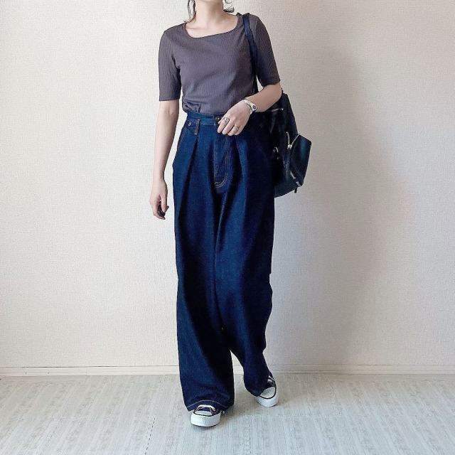暑がりの方は五分袖トップスを着るのも手。「半袖には少し早いかな?」というときも五分袖なら春らしく、かつ涼しく過ごせますよ。