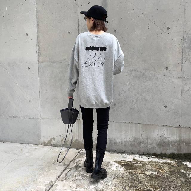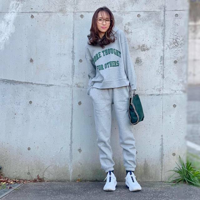 グレースウェット×グレーボトムのワントーンコーデ
