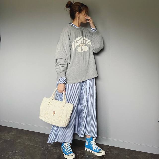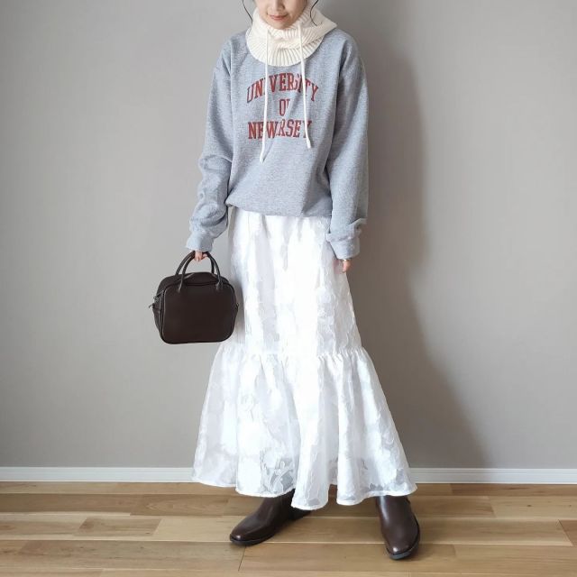 グレースウェット×ボリュームスカートのコーデ