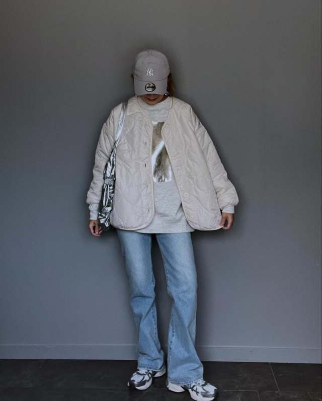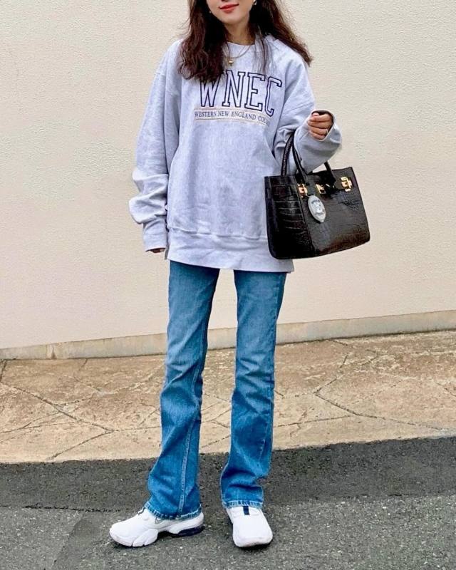 グレースウェット×デニムパンツのコーデ