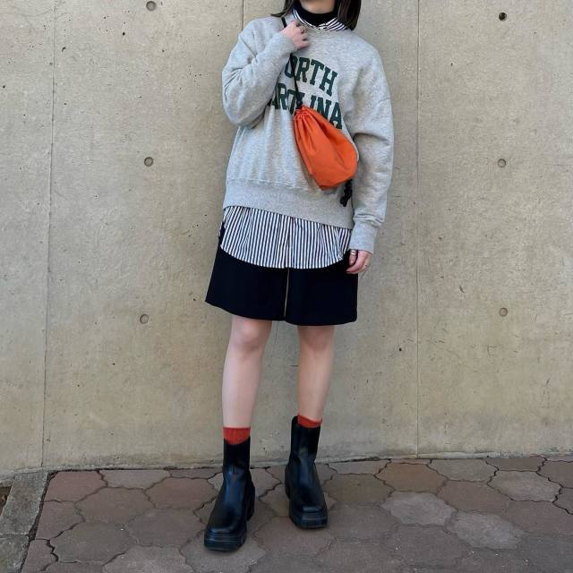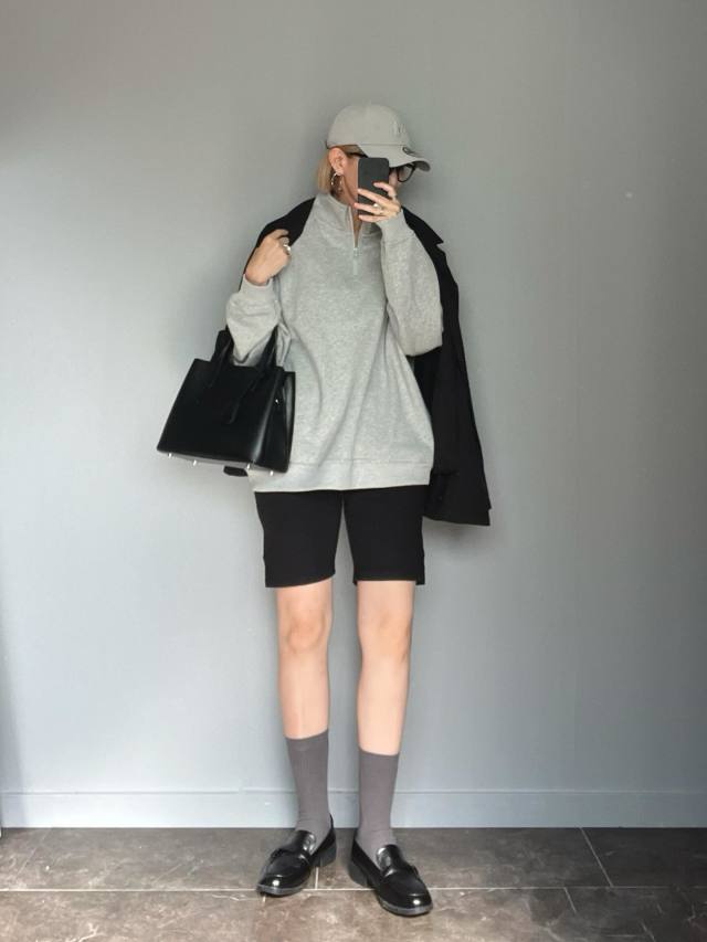 グレースウェット×ショートパンツのコーデ