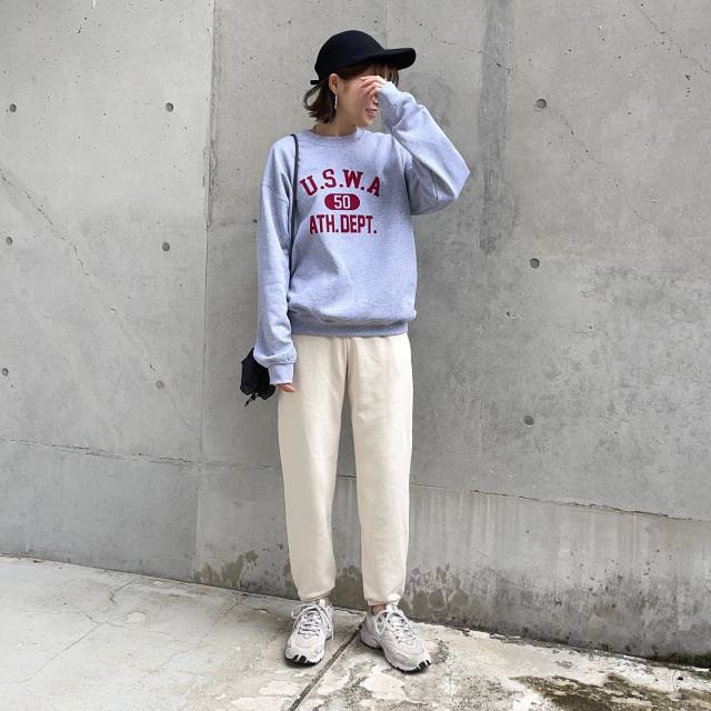 グレースウェット×ホワイトボトムのコーデ