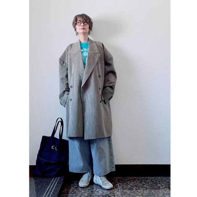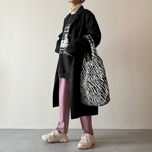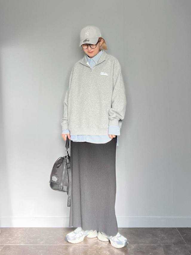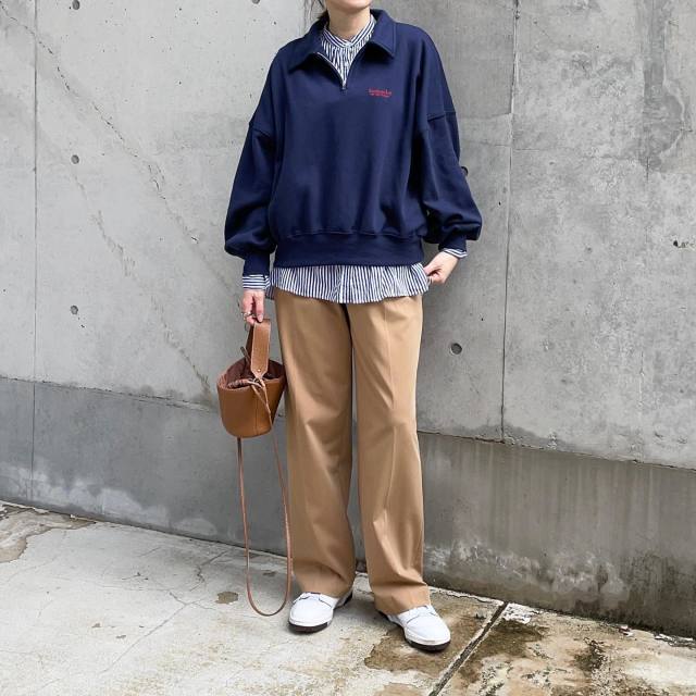 スウェット×スニーカー×タックワイドパンツのコーデ