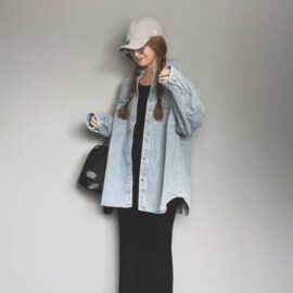 いつもの友達と気軽に集まるバーベキュー。そんな日はとにかくリラックスできる服装を選びたいですよね。ユニクロのライトブルーのデニムジャケットにストレートのグレースウェットワイドパンツを合わせれば、楽ちんだけどこなれ感のある着こなしに。日差しの強い場所でのバーベキューならキャップも忘れず持参しましょう。