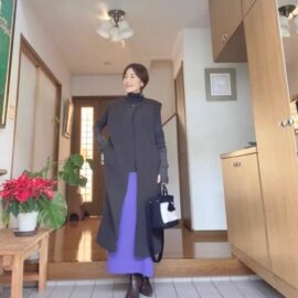 またフィット感のあるヘンリーネックTシャツは、ボリュームのあるカーディガンやショートブルゾンのインナーとしても最適。Tシャツのボタンを少し開けて着こなすと、抜け感のあるコーデに仕上がりますよ。
