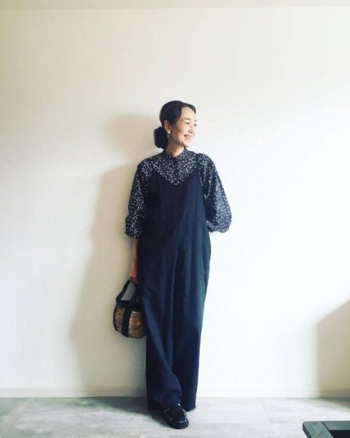 【50代の習い事の服装】ラクなのにきれい見え「Vネックのジャンパースカート・サロペット」