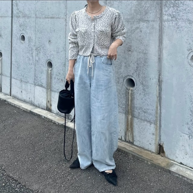 カジュアル派さんから支持を集めているのは「ワイドデニムパンツ」。洗いざらしたような淡いブルーで、クラッシュやカットアウトなどダメージ加工がされていないクリーンなデニムパンツがトレンドです。
