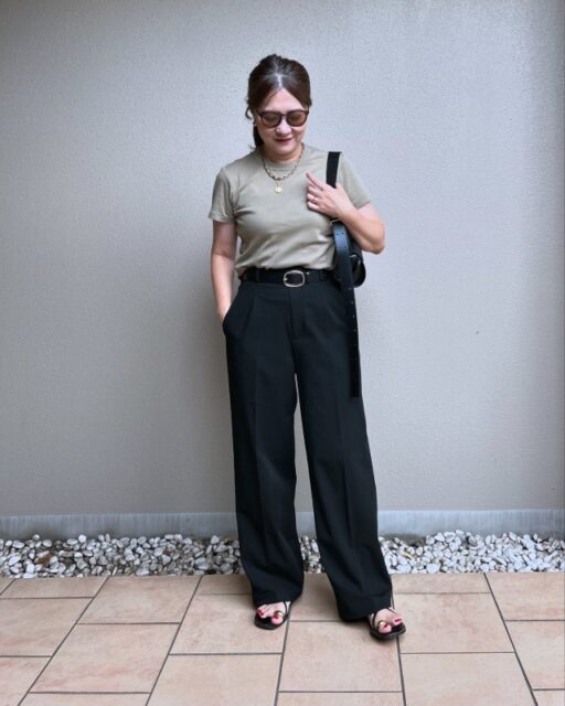 夏といえばTシャツですが、黒ワイドパンツとのワンツーコーデだとラクチンだけれどシンプルすぎると感じることも。実は、ちょっとしたコツを押さえるだけでスタイリッシュな印象にシフトします。ポイントはシルエットがきれいで色がシックなTシャツを選ぶこと。