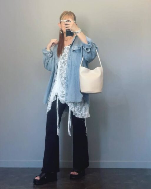 カジュアル派さんから支持を集めるのが「ゆったりめのデニムシャツ」。1枚で着るのはもちろん、軽めのアウターとして羽織るなど幅広いコーデで着回せます。この使い勝手のよさは定番アイテムならでは。