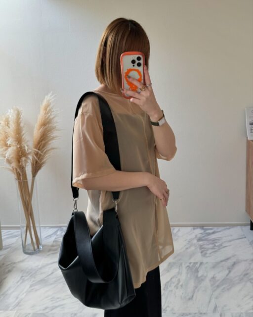 大人の女性から支持を集めているのが「スクエア型&マチ幅のあるショルダーバッグ」。小ぶりながら奥行きがあり、見た目以上に収納力があります。しかもシルエットはスマートなので、コーデがスタイリッシュな雰囲気に決まるのも魅力。