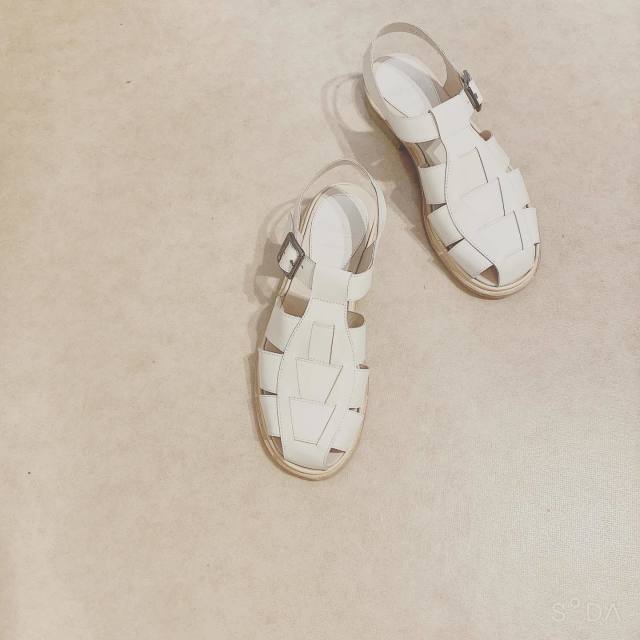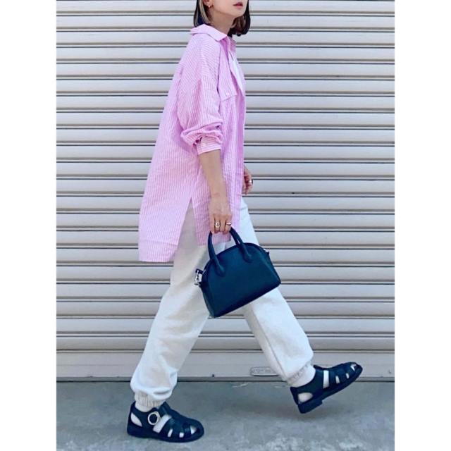 最高気温が18度・19度・20度になってきた頃は「サボサンダル」の履き始めにぴったり。前から見るとレザーシューズのように見えるので、5月上旬のシーズンムードにハマります。サボサンダルはカカトのないデザインなので、この時期は靴下を合わましょう。