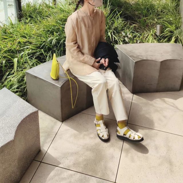 また「グルカサンダル×ソックス」のおしゃれが楽しめるのは5月ならではの醍醐味。布面積が多いグルカサンダルから覗く靴下をコーデの差し色にしてみましょう。