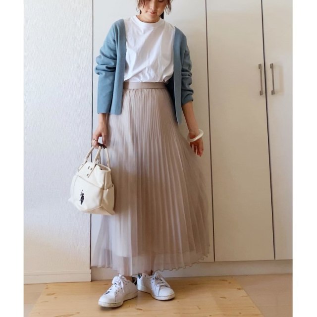 カーディガンやジャケットを羽織る着こなしもこの時期に最適。脱いだり着たりしやすいので、暑くなったときの調整がスムーズです。