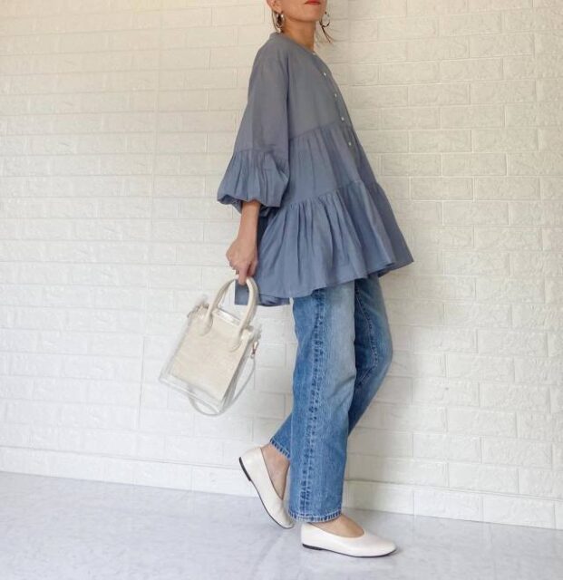 Aラインやペプラムのブラウスは風が抜けやすく、お腹まわりが涼やかなのが魅力。またきれいめ感があるので、デート服としてもイチ押しです。