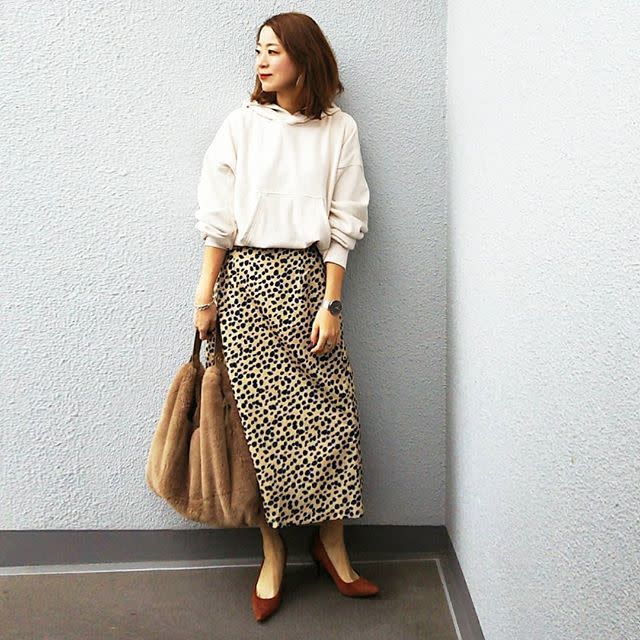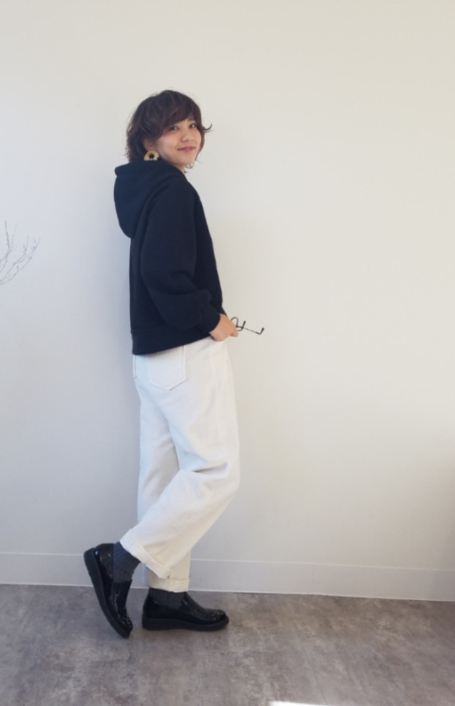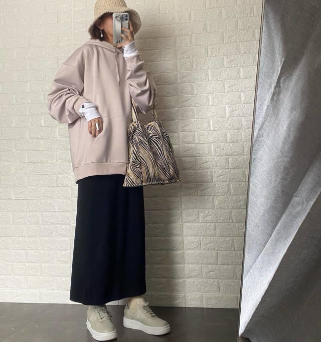 フードと髪の毛が重なるとハネやうねりが気になりやすいので、動きのあるヘアスタイルにまとめるのがコツ。毛先を軽く巻いたりすると、おしゃれなバランスをキープしやすいですよ。